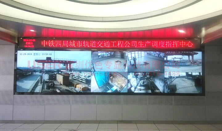 項目介紹:采用46寸2x5組合,物理拼縫6.7mm,鋁合金支架安裝。