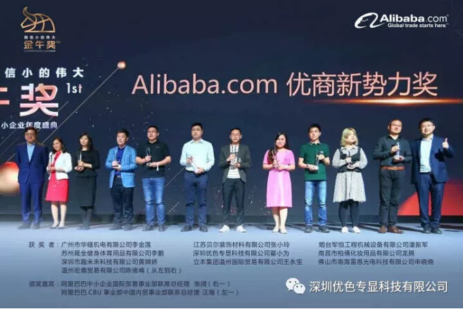 熱烈祝賀 優色專顯 榮獲阿里巴巴全球供應商評選:優商新勢力獎 ?。?!
