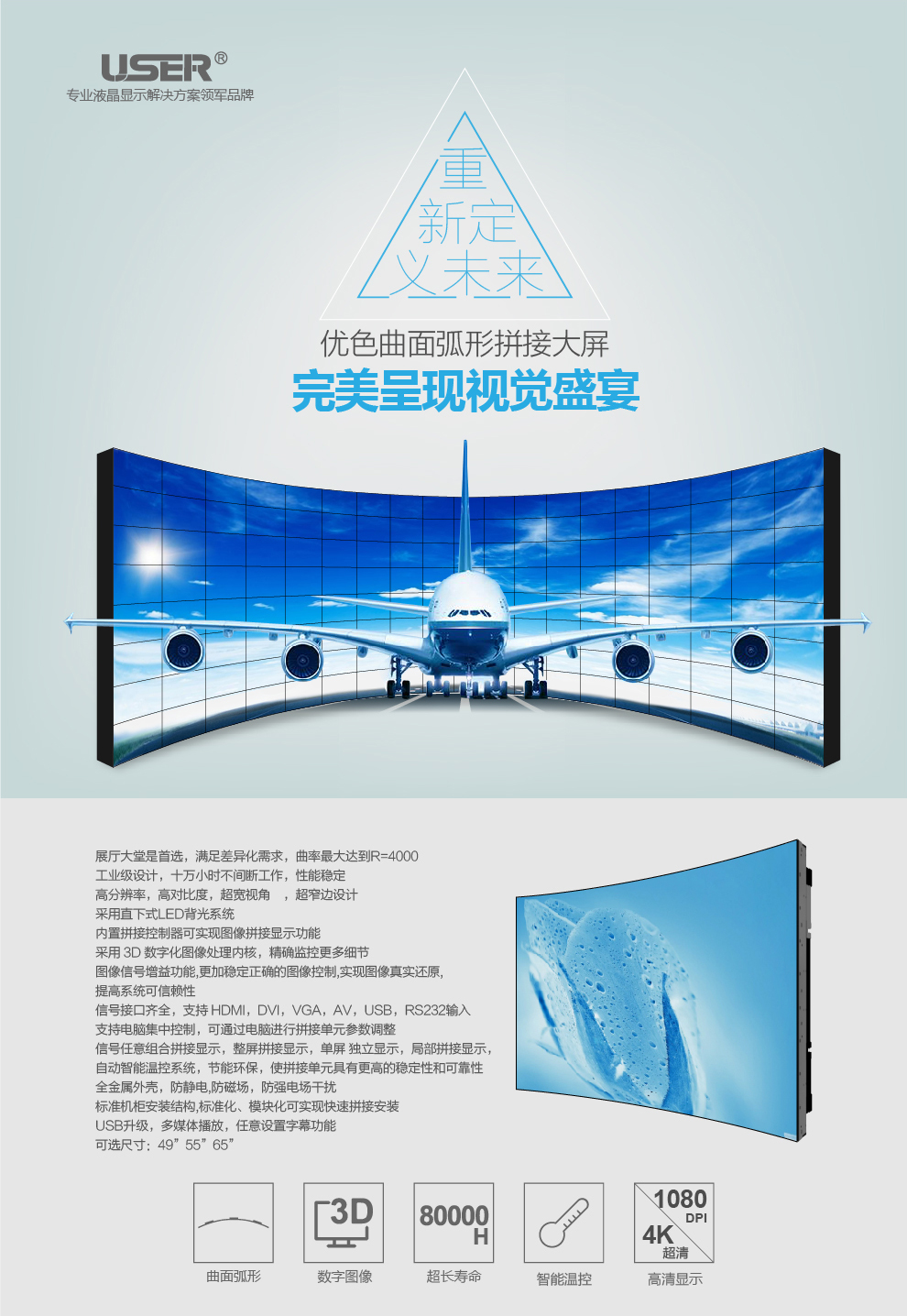 菜單產(chǎn)品中心Product center 液晶廣告機(jī) 壁掛式廣告機(jī) 落地立式廣告機(jī) 電梯超薄廣告機(jī) 車(chē)載廣告機(jī) 高亮廣告機(jī) 戶外廣告機(jī) 液晶拼接屏 專(zhuān)業(yè)液晶拼接屏 4K液晶拼接屏 廣告拼接屏 無(wú)縫液晶拼接屏 觸摸液晶拼接屏 LED顯示屏 觸控一體機(jī) 壁掛式觸控一體機(jī) 立式觸控一體機(jī) 斜面觸控一體機(jī) 智能家居觸控一體機(jī) 戶外觸控一體機(jī) 液晶電子白板 教育電子白板 會(huì)議電子白板 工控一體機(jī) 觸摸顯示器 紅外觸摸顯示器 電容觸摸顯示器 電阻觸摸顯示器 聲波觸摸顯示器 納米觸摸顯示器 液晶監(jiān)視器 專(zhuān)業(yè)級(jí)監(jiān)視器 4K監(jiān)視器 嵌入式監(jiān)視器 機(jī)架式監(jiān)視器 開(kāi)放式監(jiān)視器 SDI監(jiān)視器 高亮監(jiān)視器 廣播級(jí)監(jiān)視器 工業(yè)顯示器 4K顯示器 機(jī)架式顯示器 開(kāi)放式顯示器 醫(yī)療顯示器 KVM顯示器 指揮室顯示器 智慧校園產(chǎn)品 專(zhuān)業(yè)定制商顯 多屏廣告機(jī) 多功能觸控一體機(jī) 多功能廣告機(jī) 微信打印廣告機(jī) 魔鏡廣告機(jī) 透明廣告機(jī) 全息廣告機(jī) 條形屏廣告機(jī) 旋轉(zhuǎn)廣告機(jī) 裸眼3D廣告機(jī) 人工智能產(chǎn)品 顯示配套設(shè)備 拼接配套設(shè)備 廣告機(jī)播放盒 OPS播放盒 拼接支架 移動(dòng)支架 相關(guān)軟件 吊頂支架 線材 木架 蜂窩箱 桌面底座 熱門(mén)產(chǎn)品 →優(yōu)色3.5mm超窄邊46寸液晶拼接屏→優(yōu)色49寸3.5mm超窄邊液晶拼接屏→優(yōu)色3.5mm超窄邊55寸液晶拼接屏 您的位置:首頁(yè) → 公司產(chǎn)品 → 液晶拼接屏 → 廣告拼接屏 優(yōu)色弧形單元廣告液晶拼接屏類(lèi)別:廣告拼接屏 簡(jiǎn)介: 在線咨詢 返回列表 產(chǎn)品說(shuō)明 相關(guān)產(chǎn)品 優(yōu)色弧形單元廣告液晶拼接屏 廣告液晶拼接屏