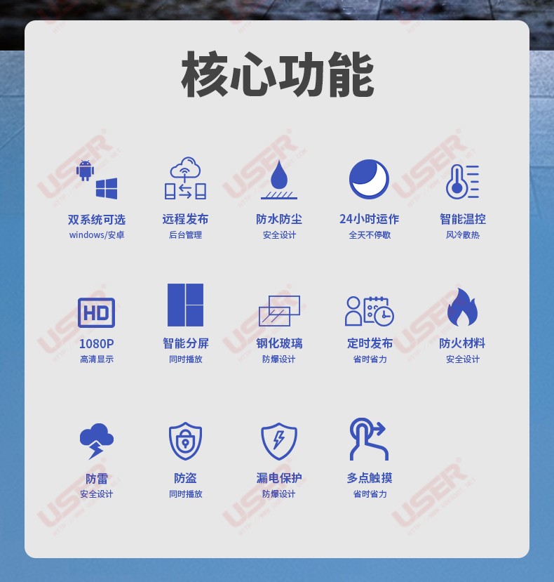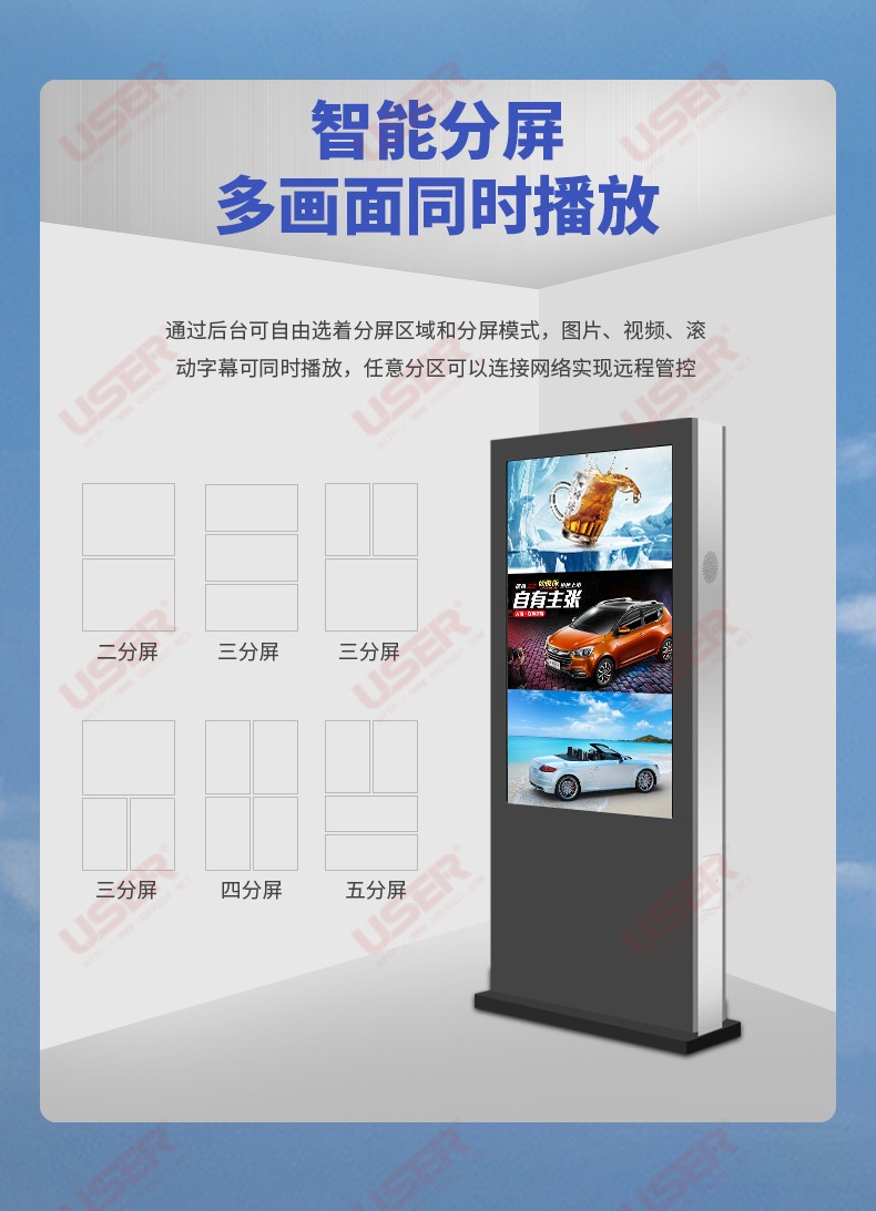 菜單產品中心Product center 液晶廣告機 壁掛式廣告機 落地立式廣告機 電梯超薄廣告機 車載廣告機 高亮廣告機 戶外廣告機 液晶拼接屏 專業液晶拼接屏 4K液晶拼接屏 廣告拼接屏 無縫液晶拼接屏 觸摸液晶拼接屏 LED顯示屏 觸控一體機 壁掛式觸控一體機 立式觸控一體機 斜面觸控一體機 智能家居觸控一體機 戶外觸控一體機 液晶電子白板 教育電子白板 會議電子白板 工控一體機 觸摸顯示器 紅外觸摸顯示器 電容觸摸顯示器 電阻觸摸顯示器 聲波觸摸顯示器 納米觸摸顯示器 液晶監視器 專業級監視器 4K監視器 嵌入式監視器 機架式監視器 開放式監視器 SDI監視器 高亮監視器 廣播級監視器 工業顯示器 4K顯示器 機架式顯示器 開放式顯示器 醫療顯示器 KVM顯示器 指揮室顯示器 智慧校園產品 專業定制商顯 多屏廣告機 多功能觸控一體機 多功能廣告機 微信打印廣告機 魔鏡廣告機 透明廣告機 全息廣告機 條形屏廣告機 旋轉廣告機 裸眼3D廣告機 人工智能產品 顯示配套設備 拼接配套設備 廣告機播放盒 OPS播放盒 拼接支架 移動支架 相關軟件 吊頂支架 線材 木架 蜂窩箱 桌面底座 熱門產品 →優色3.5mm超窄邊46寸液晶拼接屏→優色49寸3.5mm超窄邊液晶拼接屏→優色3.5mm超窄邊55寸液晶拼接屏 您的位置:首頁 → 公司產品 → 液晶廣告機 → 戶外廣告機 55寸戶外落地廣告機類別:戶外廣告機 簡介:液晶尺寸:55英寸 1.整機采用風冷方案,達到IP65防護等級,防塵、防水,可完全安裝于室外; 2.高亮度的液晶顯示屏,配合自動光感控制系統陽光下可視; 3.具備溫控功能,在寬溫條件下可以正常工... 在線咨詢 返回列表 產品說明 相關產品 55寸戶外壁掛廣告機 55寸戶外落地廣告機 49寸戶外落地廣告機 43寸戶外落地廣告機 32寸戶外落地廣告機 65寸戶外燈桿屏_智慧路燈屏