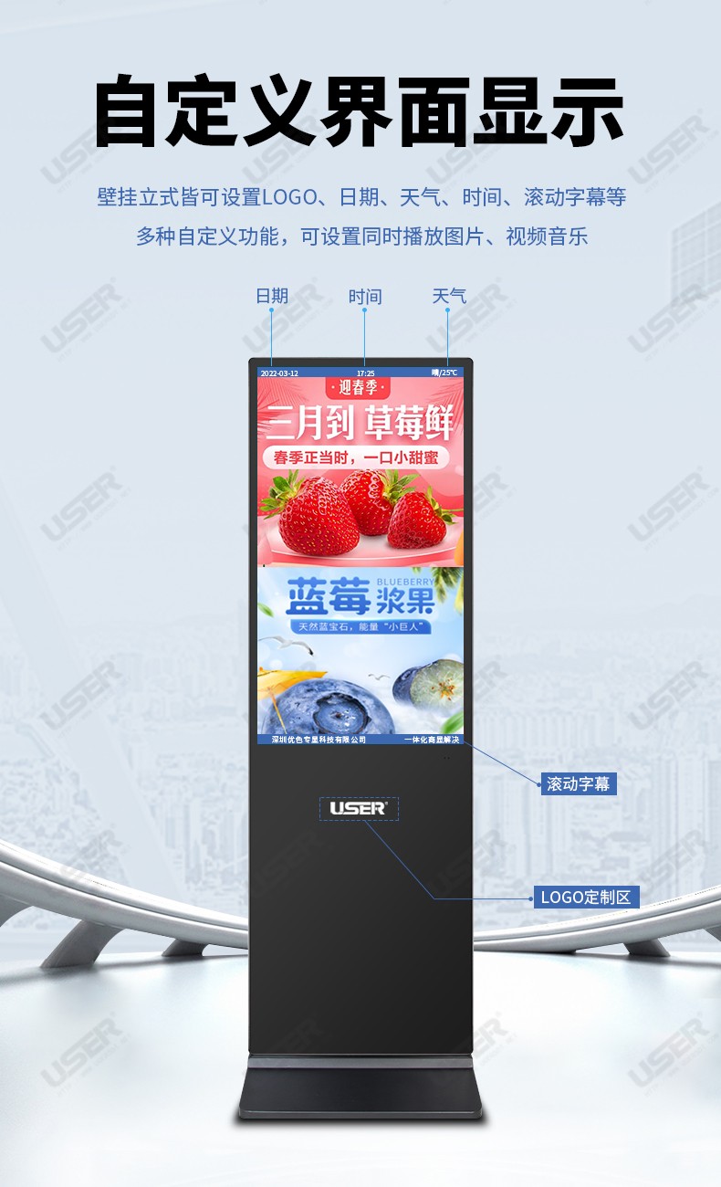 菜單產品中心Product center 液晶廣告機 壁掛式廣告機 落地立式廣告機 電梯超薄廣告機 車載廣告機 高亮廣告機 戶外廣告機 液晶拼接屏 專業液晶拼接屏 4K液晶拼接屏 廣告拼接屏 無縫液晶拼接屏 觸摸液晶拼接屏 LED顯示屏 觸控一體機 壁掛式觸控一體機 立式觸控一體機 斜面觸控一體機 智能家居觸控一體機 戶外觸控一體機 液晶電子白板 教育電子白板 會議電子白板 工控一體機 觸摸顯示器 紅外觸摸顯示器 電容觸摸顯示器 電阻觸摸顯示器 聲波觸摸顯示器 納米觸摸顯示器 液晶監視器 專業級監視器 4K監視器 嵌入式監視器 機架式監視器 開放式監視器 SDI監視器 高亮監視器 廣播級監視器 工業顯示器 4K顯示器 機架式顯示器 開放式顯示器 醫療顯示器 KVM顯示器 指揮室顯示器 智慧校園產品 專業定制商顯 多屏廣告機 多功能觸控一體機 多功能廣告機 微信打印廣告機 魔鏡廣告機 透明廣告機 全息廣告機 條形屏廣告機 旋轉廣告機 裸眼3D廣告機 人工智能產品 顯示配套設備 拼接配套設備 廣告機播放盒 OPS播放盒 拼接支架 移動支架 相關軟件 吊頂支架 線材 木架 蜂窩箱 桌面底座 熱門產品 →優色3.5mm超窄邊46寸液晶拼接屏→優色49寸3.5mm超窄邊液晶拼接屏→優色3.5mm超窄邊55寸液晶拼接屏 您的位置:首頁 → 公司產品 → 液晶廣告機 → 落地立式廣告機 55寸立式廣告機類別:落地立式廣告機 簡介:采用高清16:9全視角LCD顯示屏,分辨率為1920*1080,Android、Windows、單機等方案可選,顯示面積 680.4*1209.6mm 顯示比例 16:9 可視角度 89/89/89/89(左/右/上/下) 亮 度 350cd/m2 背光類... 在線咨詢 返回列表 產品說明 相關產品 65寸落地立式廣告機 55寸立式廣告機 50寸立式落地廣告機 43寸立式落地廣告機 43寸46寸49寸55寸65寸86寸仿蘋果款立式廣告機 55寸超薄立式廣告機