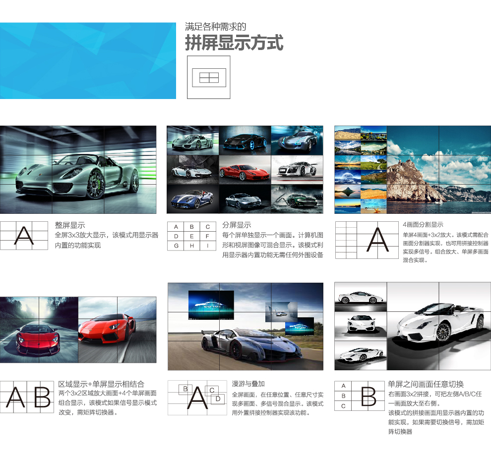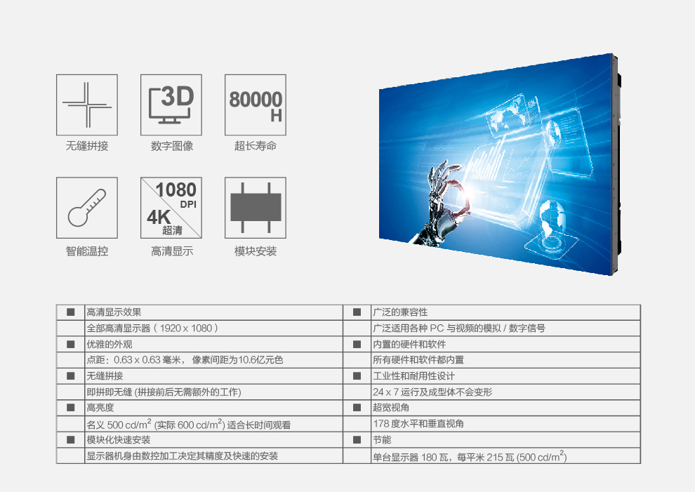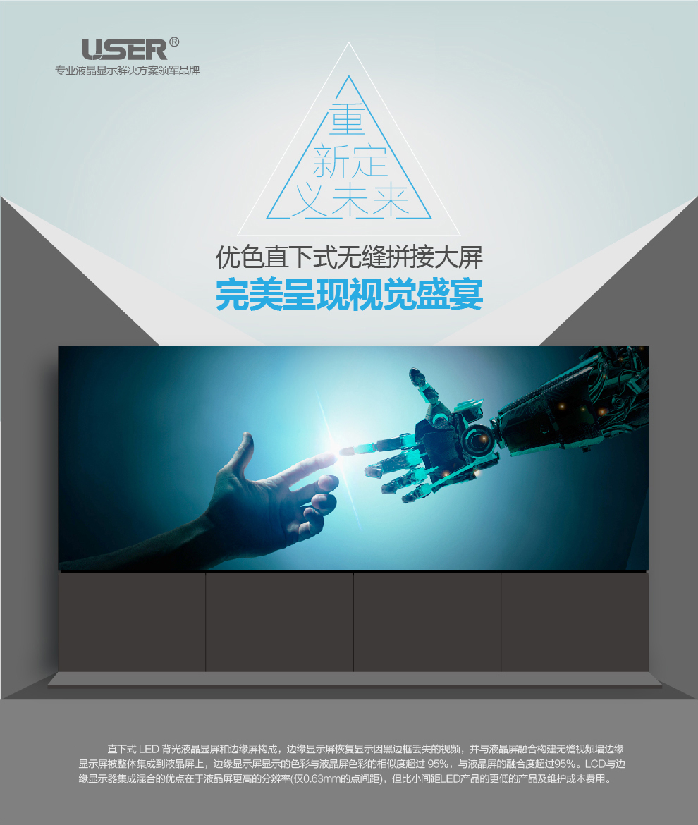 菜單產(chǎn)品中心Product center 液晶廣告機(jī) 壁掛式廣告機(jī) 落地立式廣告機(jī) 電梯超薄廣告機(jī) 車載廣告機(jī) 高亮廣告機(jī) 戶外廣告機(jī) 液晶拼接屏 專業(yè)液晶拼接屏 4K液晶拼接屏 廣告拼接屏 無縫液晶拼接屏 觸摸液晶拼接屏 LED顯示屏 觸控一體機(jī) 壁掛式觸控一體機(jī) 立式觸控一體機(jī) 斜面觸控一體機(jī) 智能家居觸控一體機(jī) 戶外觸控一體機(jī) 液晶電子白板 教育電子白板 會(huì)議電子白板 工控一體機(jī) 觸摸顯示器 紅外觸摸顯示器 電容觸摸顯示器 電阻觸摸顯示器 聲波觸摸顯示器 納米觸摸顯示器 液晶監(jiān)視器 專業(yè)級(jí)監(jiān)視器 4K監(jiān)視器 嵌入式監(jiān)視器 機(jī)架式監(jiān)視器 開放式監(jiān)視器 SDI監(jiān)視器 高亮監(jiān)視器 廣播級(jí)監(jiān)視器 工業(yè)顯示器 4K顯示器 機(jī)架式顯示器 開放式顯示器 醫(yī)療顯示器 KVM顯示器 指揮室顯示器 智慧校園產(chǎn)品 專業(yè)定制商顯 多屏廣告機(jī) 多功能觸控一體機(jī) 多功能廣告機(jī) 微信打印廣告機(jī) 魔鏡廣告機(jī) 透明廣告機(jī) 全息廣告機(jī) 條形屏廣告機(jī) 旋轉(zhuǎn)廣告機(jī) 裸眼3D廣告機(jī) 人工智能產(chǎn)品 顯示配套設(shè)備 拼接配套設(shè)備 廣告機(jī)播放盒 OPS播放盒 拼接支架 移動(dòng)支架 相關(guān)軟件 吊頂支架 線材 木架 蜂窩箱 桌面底座 熱門產(chǎn)品 →優(yōu)色3.5mm超窄邊46寸液晶拼接屏→優(yōu)色49寸3.5mm超窄邊液晶拼接屏→優(yōu)色3.5mm超窄邊55寸液晶拼接屏 您的位置:首頁 → 公司產(chǎn)品 → 液晶拼接屏 → 無縫液晶拼接屏 優(yōu)色無縫拼縫液晶拼接屏類別:無縫液晶拼接屏 簡(jiǎn)介: 在線咨詢 返回列表 產(chǎn)品說明 相關(guān)產(chǎn)品 優(yōu)色無縫拼縫液晶拼接屏 光學(xué)補(bǔ)償無縫液晶拼接屏 光學(xué)板無縫液晶拼接屏