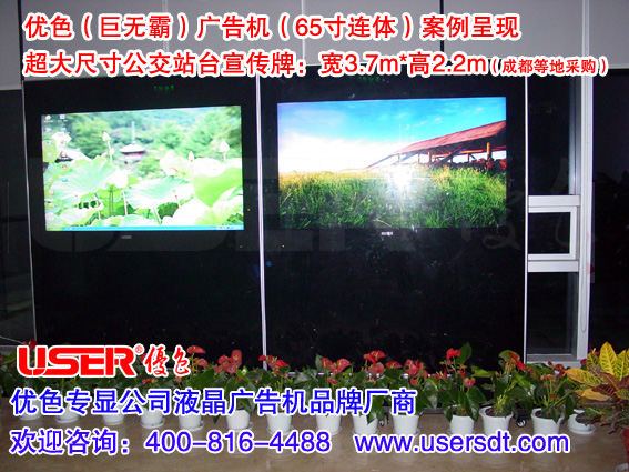 產(chǎn)品使用1臺65寸網(wǎng)絡版廣告機,1臺65寸一體機,整體生產(chǎn)運輸安裝,是目前市場上體積最大、重量最重的廣告機。