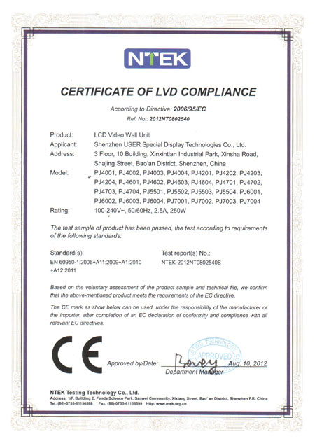 CE認證歐盟認證(液晶拼接LVD安規證書)