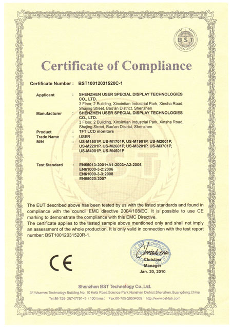 CE認證歐盟認證(液晶監視器 EMC證書)